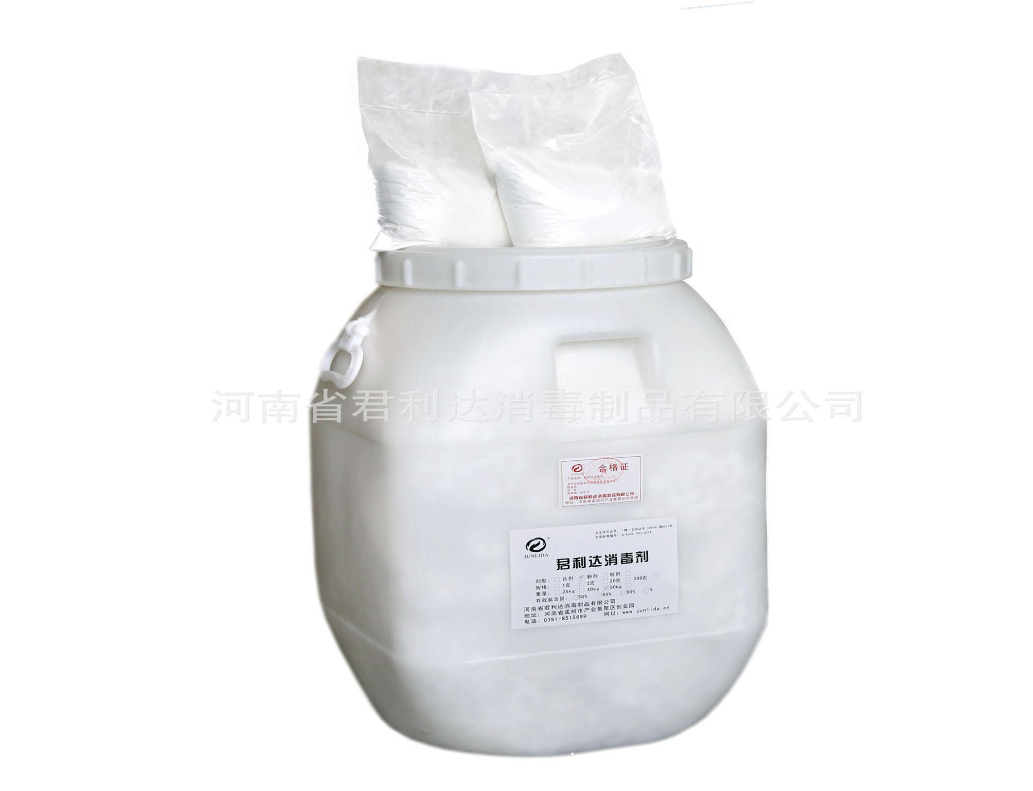 外觀:白色粉劑;規(guī)格:1kg*50袋/桶;有效氯含量:≥90%; PH值(1%水溶液):2.0~3.0; 氣味:有刺激性氯味;保質(zhì)期:2年;